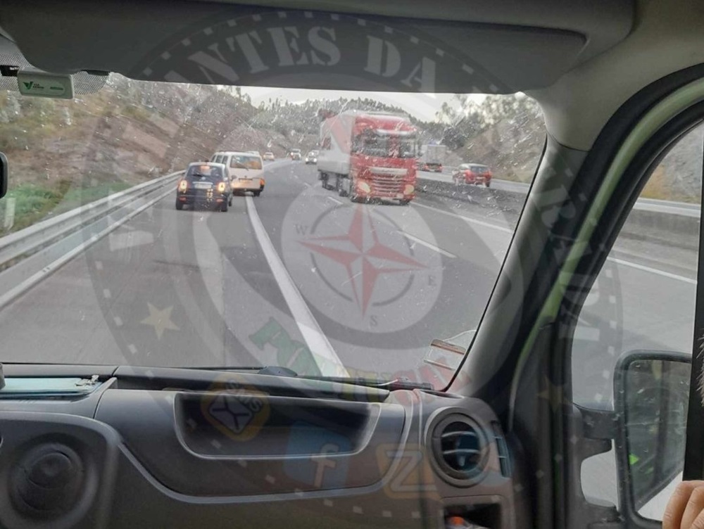 Os automobilistas foram obrigados a realizar esta manobra, uma vez que as chamas obrigaram ao corte de várias estradas, uma delas a A25 onde foi registada esta imagem.