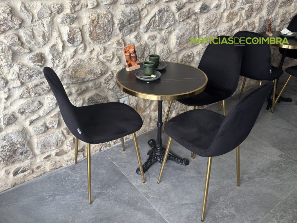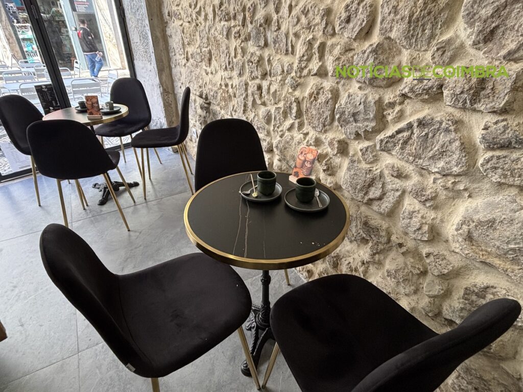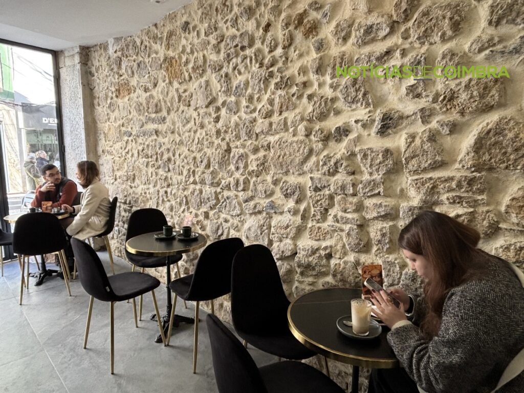 O ambiente contemporâneo convida a permanecer para lá da habitual pausa rápida para o café. Mesas de ferro e madeira, acompanhadas por poltronas de veludo preto, contrastam com uma parede de pedra que evoca a herança histórica da cidade. O resultado é um espaço tranquilo e uma passagem natural para estudantes, trabalhadores e visitantes.