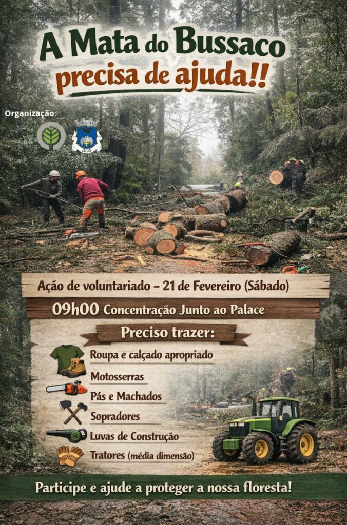 No Luso, este sábado 21 de fevereiro está agendada para as 09:00 uma ação de voluntariado denominada “A Mata do Bussaco precisa de ajuda”. Iniciativa promovida pela Fundação Mata do Bussaco e Junta de Freguesia de Luso, com concentração junto ao Palace.