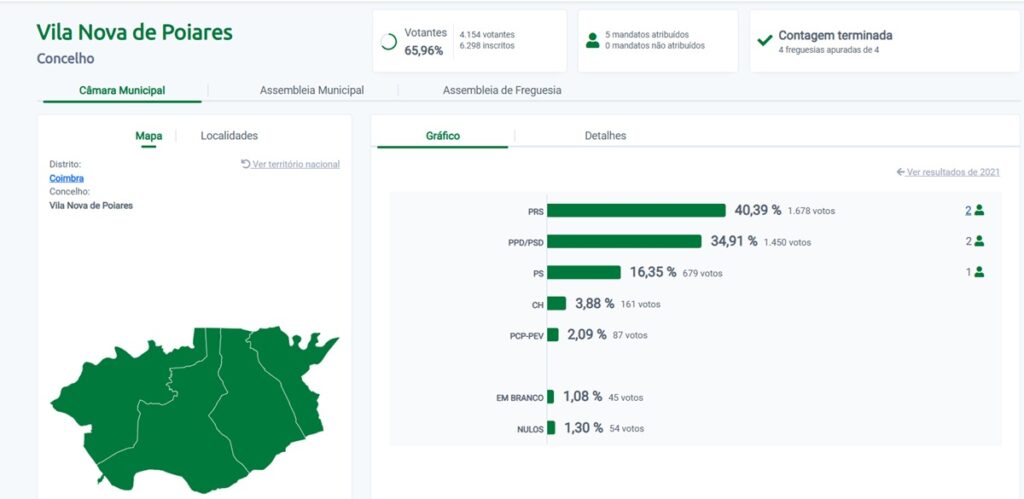 O movimento alcança dois mandatos, os mesmos que o PSD, enquanto o PS fica com apenas um.