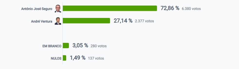 Em segundo lugar ficou André Ventura, que recolheu 27.14% votos.