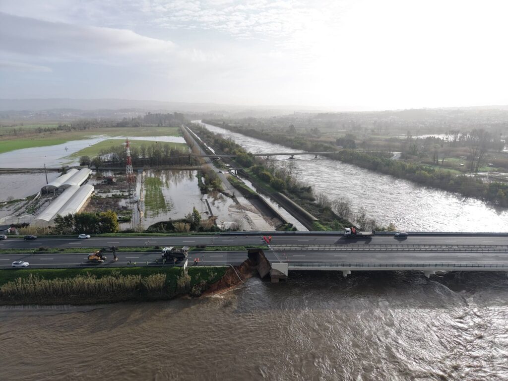 Um troço da Autoestrada 1 (A1) desabou na quarta-feira à noite na sequência do rompimento do dique nos Casais, em Coimbra, adiantou à Lusa fonte da Brisa.