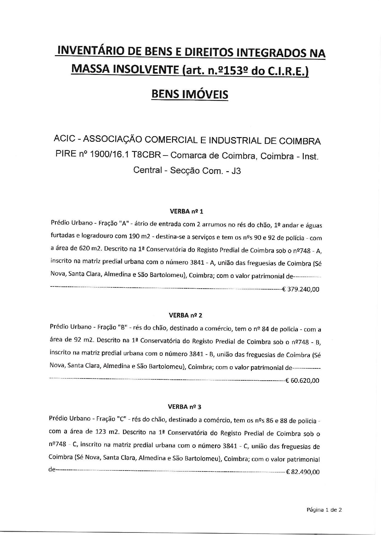 Armando Rocha Gonçalves (ARG), Administrador da Insolvência da Associação Comercial e Industrial de Coimbra (ACIC), pediu à Assembleia de Credores e ao Tribunal da Comarca de Coimbra que encerre esta agremiação e a liquidação de activos da insolvente em beneficio dos seus credores.