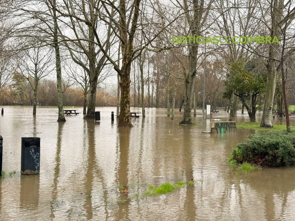 As imagens do Notícias de Coimbra mostram várias áreas já completamente inundadas, com a água a cobrir os pavilhões dedicados a desportos náuticos, como canoagem, e espaços públicos utilizados para piqueniques.