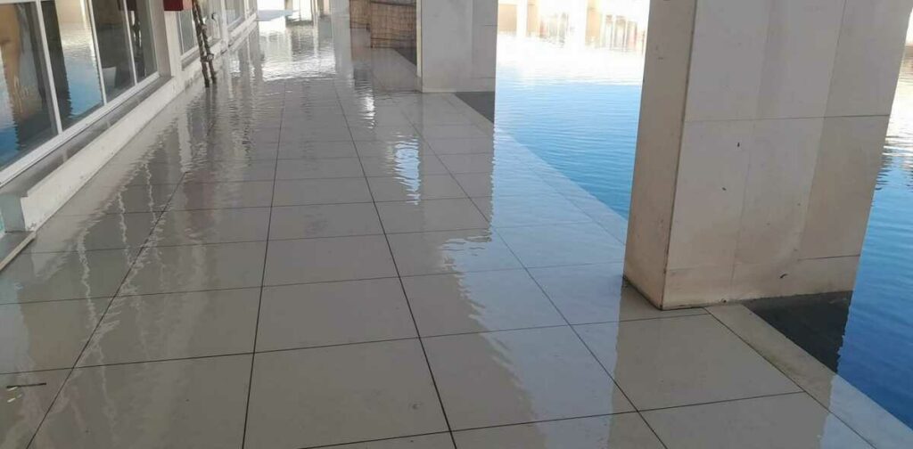 No zona do Mercado Municipal ainda há bastante água, o que preocupa comerciantes e moradores.