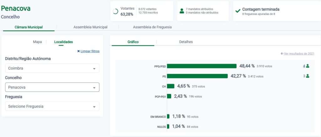O PPD/PSD reconquistou a Câmara Municipal de Penacova, obtendo 48,44% dos voto.