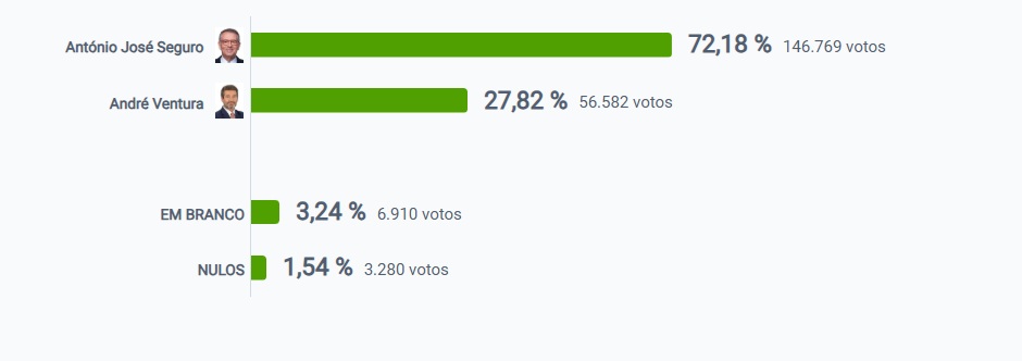 Em segundo lugar ficou André Ventura, que recolheu 27,82%, num total de 56.582 votos.