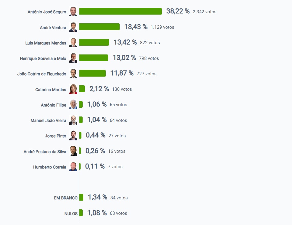 Em segundo lugar ficou André Ventura, que recolheu 18,43% votos.