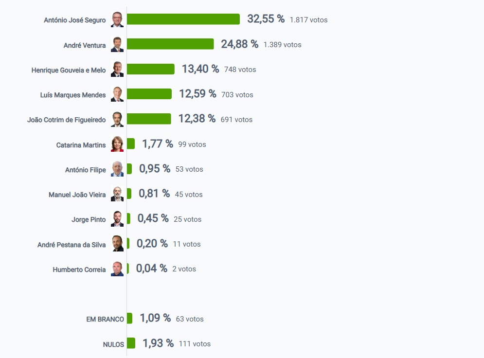 Em segundo lugar ficou André Ventura, que recolheu 24,88% votos.