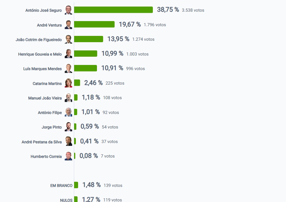 Em segundo lugar ficou André Ventura, que recolheu 19,67% votos.