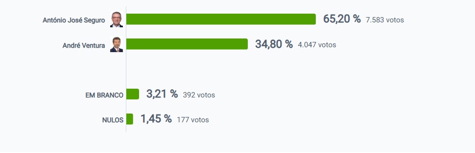 Em segundo lugar ficou André Ventura, que recolheu 34.80 % votos.