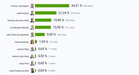 Em segundo lugar ficou André Ventura, que recolheu 21,24% votos.