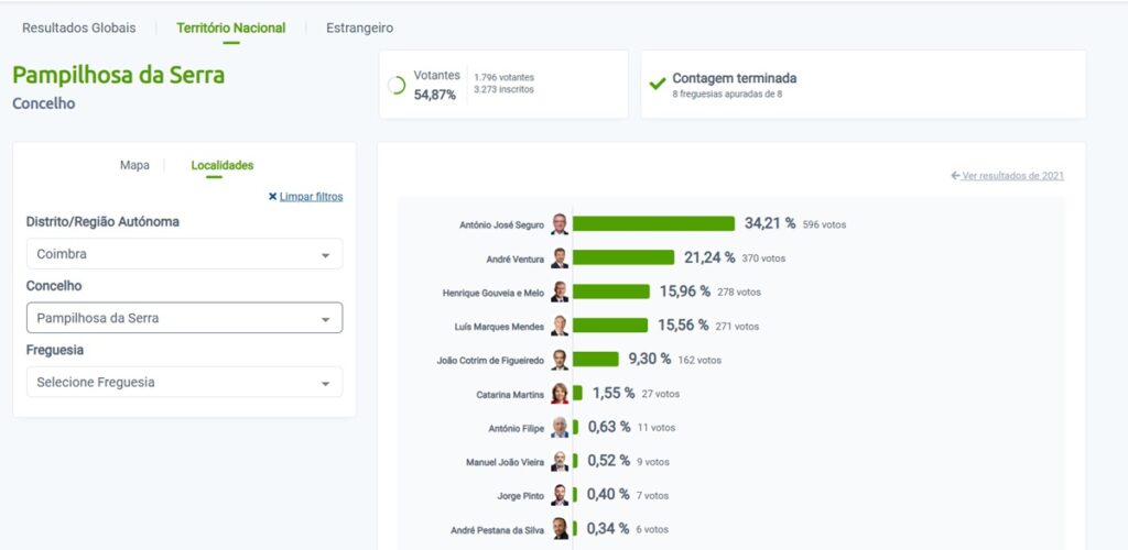 António José Seguro vence no concelho de Pampilhosa da Serra nas eleições presidenciais de 2026, ao obter 34,21% votos, tornando-se o candidato mais votado neste município.