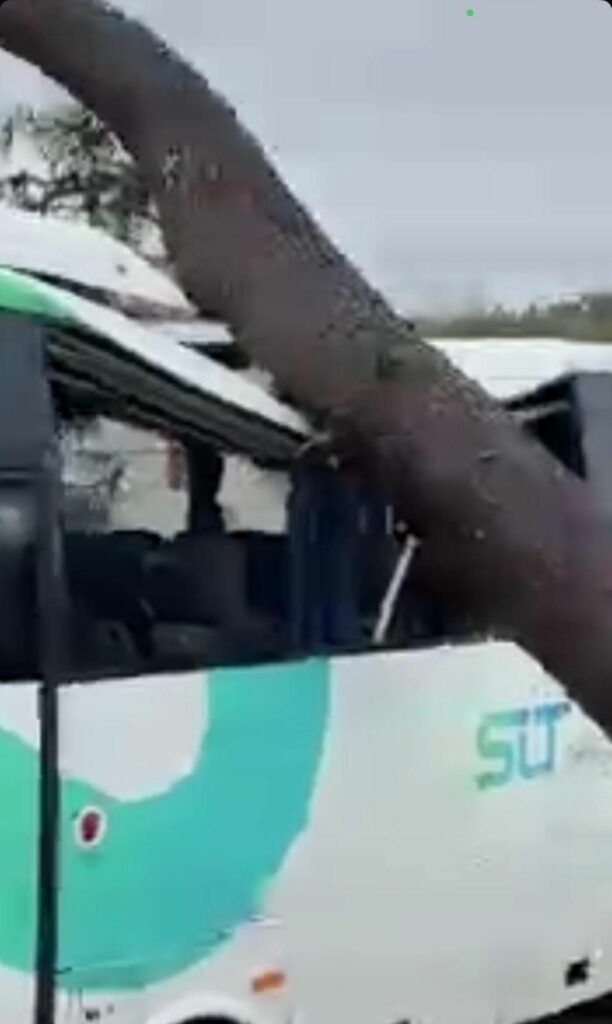 Um autocarro da SIT Região de Coimbra foi atingido por uma árvore durante a madrugada, enquanto se encontrava estacionado na localidade de Pousafoles.