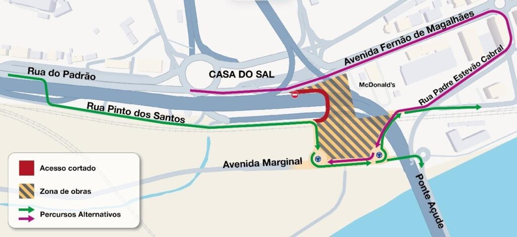Este condicionamento de trânsito deve-se à necessidade de dar continuidade às obras de conversão da passagem inferior do Túnel do Choupal em passagem nivelada rodoviária, o que permitirá melhorar o fluxo de transito entre a Av. Marginal e a Av. Fernão de Magalhães