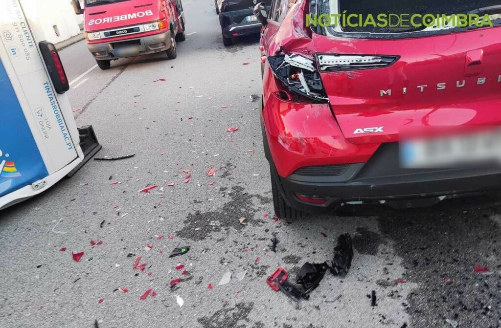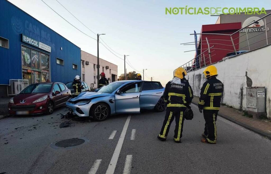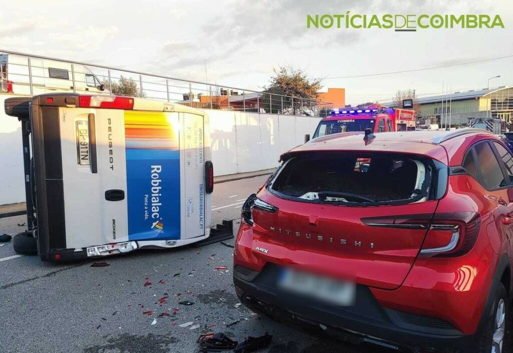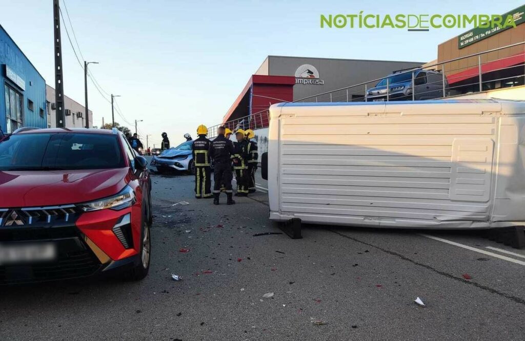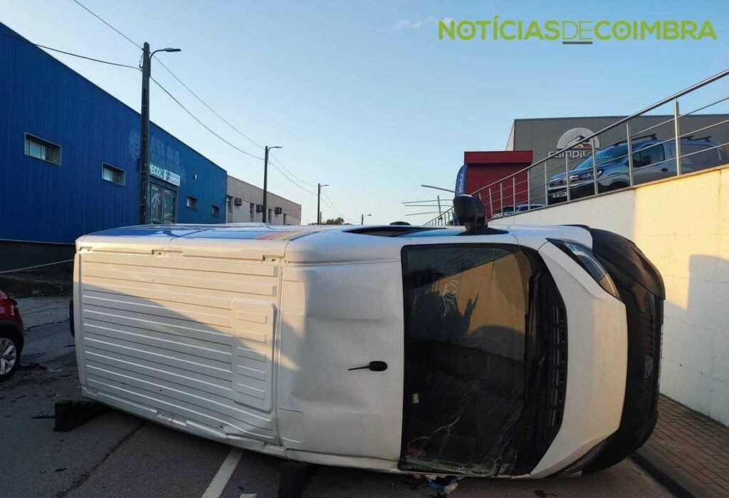 O carro acabou por atingir uma carrinha branca que circulava na estrada, deixando-a tombada lateralmente. Do impacto, a carrinha colidiu ainda com um terceiro veículo que estava estacionado.