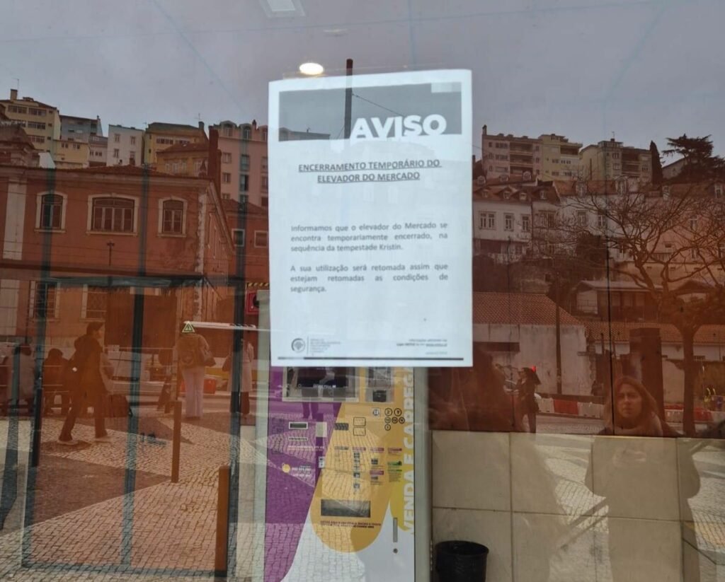 “Informamos que o elevador do mercado se encontra temporariamente encerrado, na sequência da tempestade Kristin. A sua utilização será retomada assim que estejam retomadas as condições de segurança.