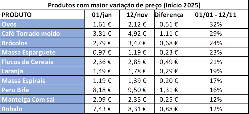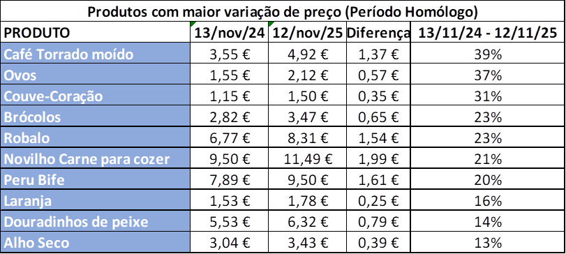 Esta semana, a tendência da perda de poder de compra acentua-se, com o cabaz alimentar a custar mais 10,02 euros (+4,27%) do que há um ano.  O preço atual de 244,95 euros, resultado de quatro semanas de aumentos consecutivos, é o segundo valor mais alto desde o início da análise em 2022, estando a uma distância de 84 cêntimos do recorde atingido a 16 de julho de 2025 (245,79€).