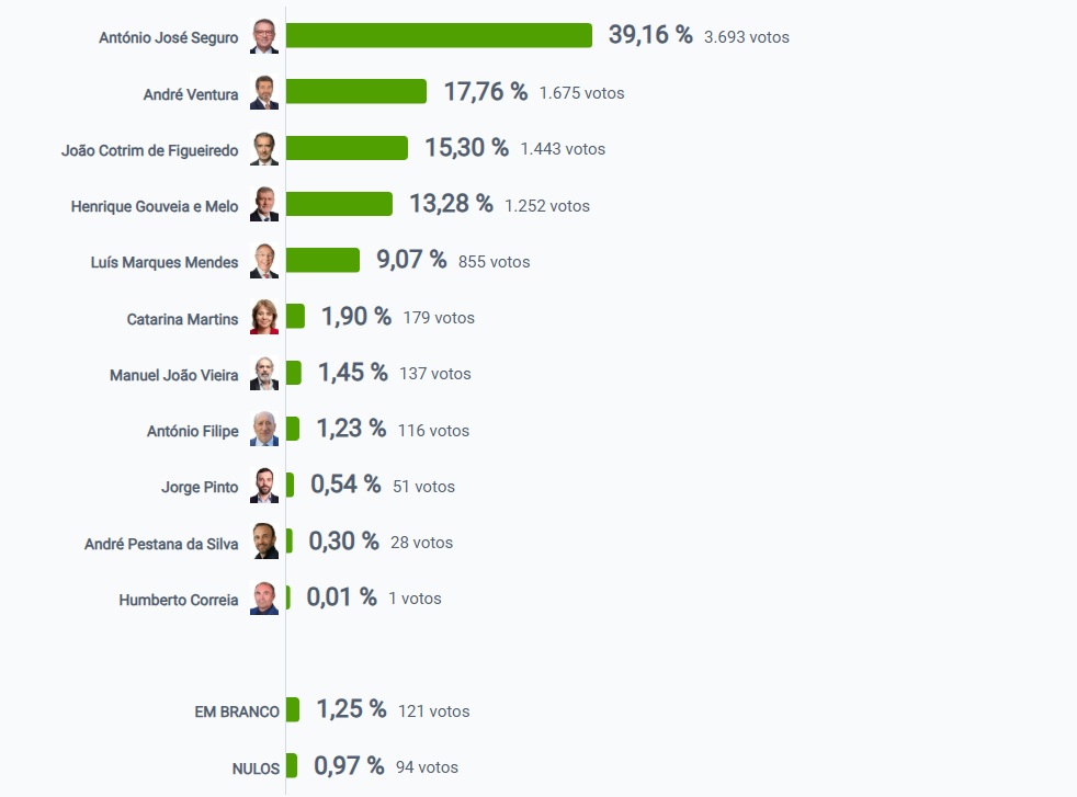 Em segundo lugar ficou André Ventura, que recolheu 17,76% votos.