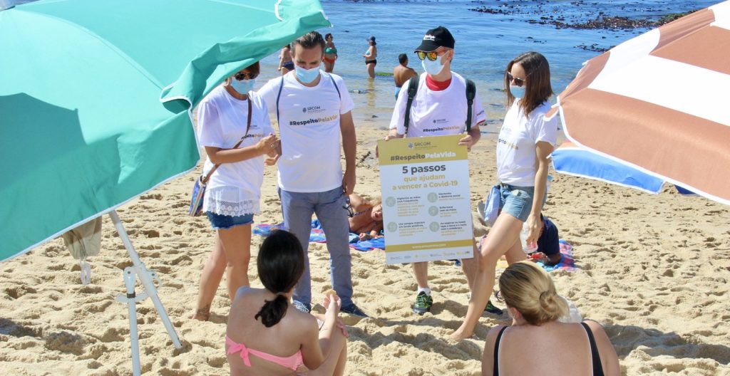 A Secção Regional do Centro da Ordem dos Médicos (SRCOM) realizou na manhã e tarde deste domingo, dia 23 de agosto, na praia da Tamargueira e no areal junto à muralha de Buarcos (Figueira da Foz), mais uma ação de sensibilização no âmbito da campanha #Respeito pela Vida. A equipa de voluntários partilhou com a população as recomendações da Direção-Geral da Saúde (DGS) relativas às boas práticas de saúde pública e à adoção de comportamentos seguros para combater a Covid-19, neste caso em particular no contexto de férias e de fruição das praias marítimas.