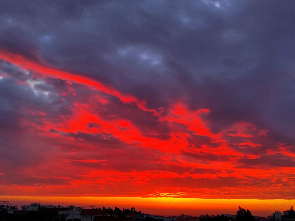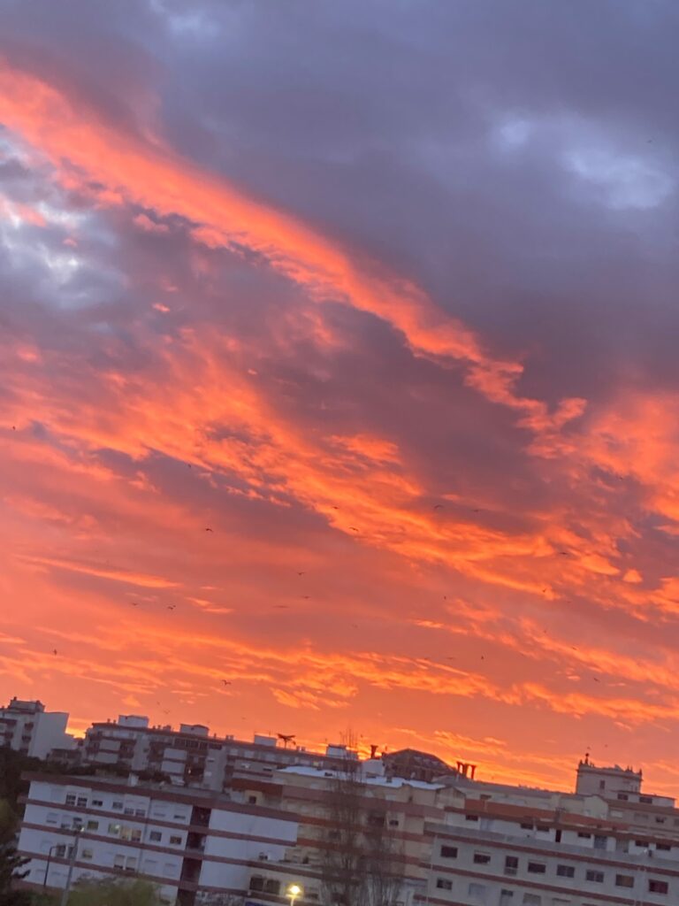 Imagens captadas na Figueira da Foz mostram o céu iluminado por cores vibrantes, criando um cenário que rapidamente chamou a atenção.