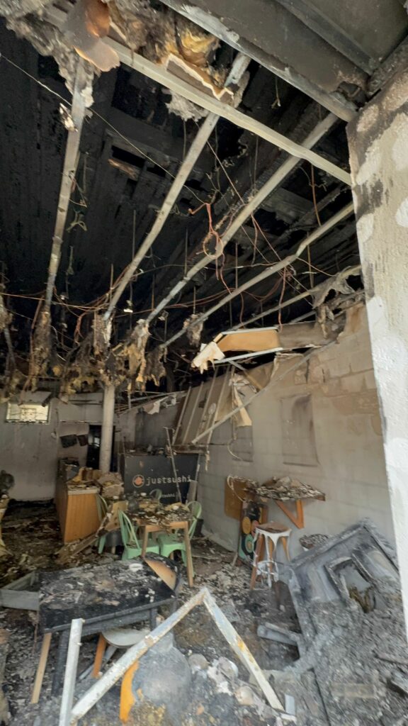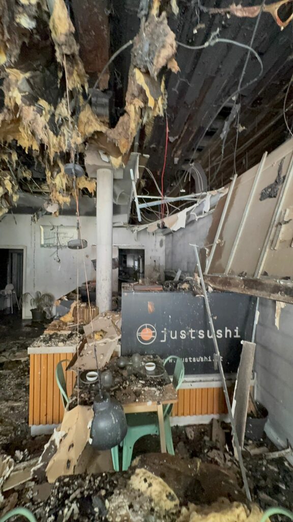 Um incêndio provocado pelo despiste de um automóvel na Avenida Sá da Bandeira, em Coimbra, esta manhã de quarta-feira, 8 de abril, destruiu por completo o restaurante Just Sushi e deixou duas mulheres e três crianças sem casa.