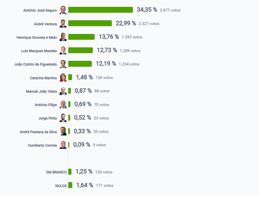 Em segundo lugar ficou André Ventura, que recolheu 22,99% votos.