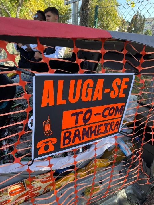 É, nesta altura, que surge a ideia de aproveitar a estrutura para também lembrar as dificuldades que muitos estudantes sentem para encontrar um quarto na cidade a preços não muito inflacionados. “Decidimos colocar um placa com a frase Aluga-se T0 com banheira”, disse o porta-voz do grupo.
