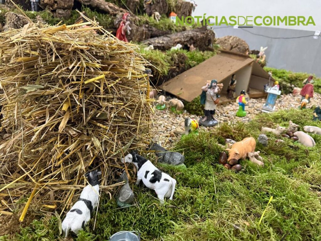 A imagem de Maria grávida, antes do nascimento de Jesus Cristo, é uma das peças que marcam um presépio onde não faltam os sons emitidos por alguns dos animais expostos.