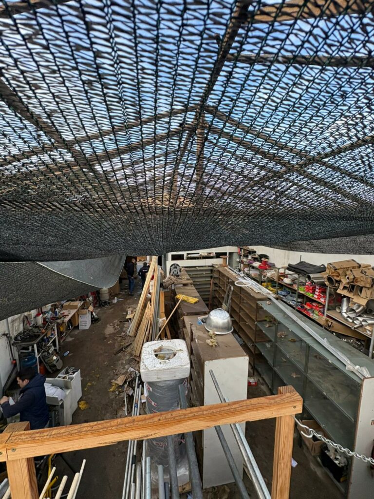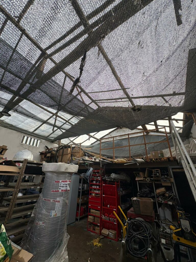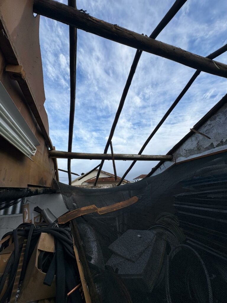 O telhado da empresa foi completamente arrancado, deixando a instalação exposta e levando a empresa a fechar temporariamente.