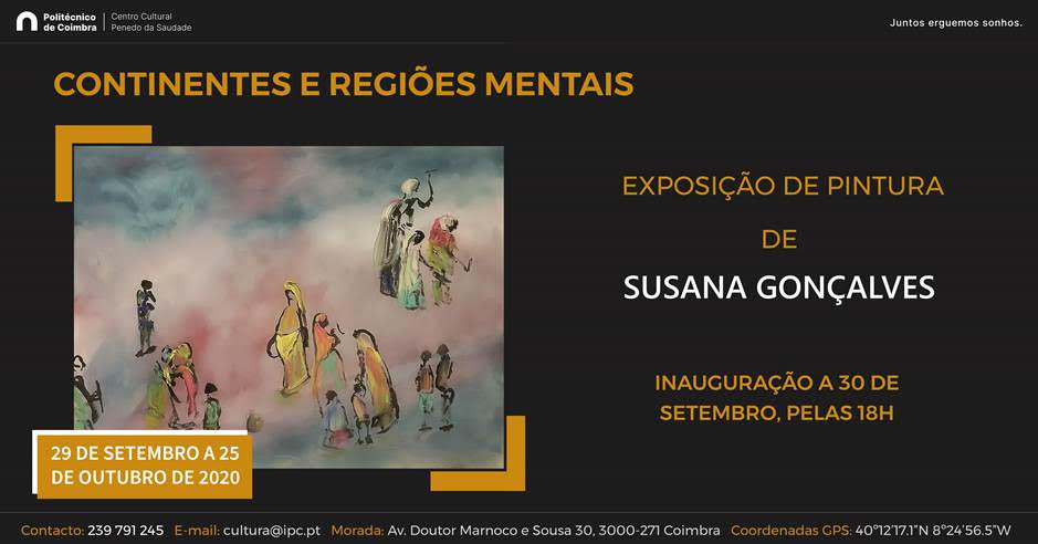 Dia 30 de setembro, pelas 18h, é inaugurada no Centro Cultural Penedo da Saudade do Instituto Politécnico de Coimbra a exposição “Continentes e Regiões Mentais” assinada por Susana Gonçalves.
