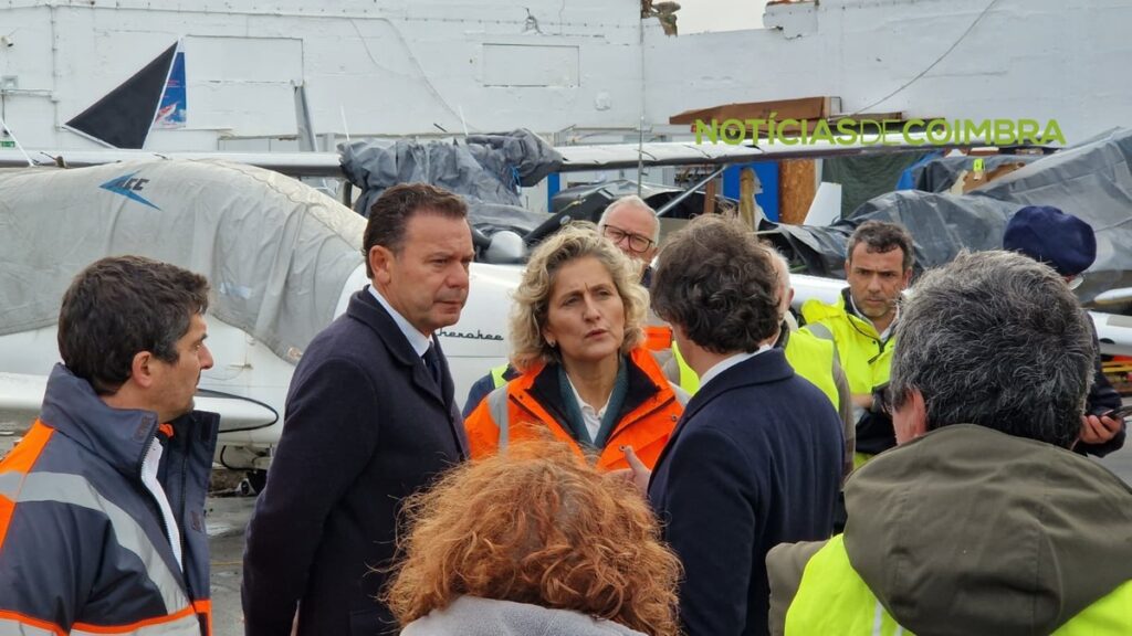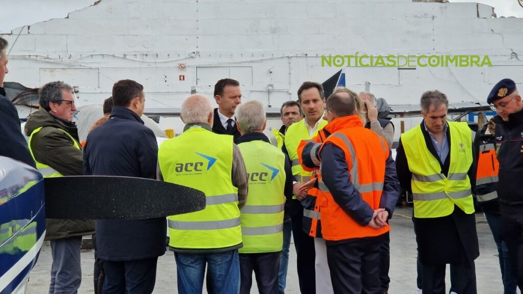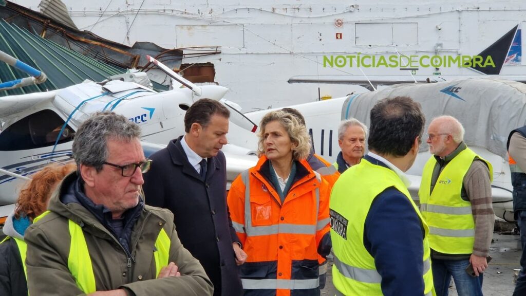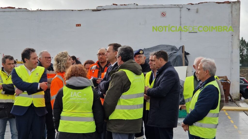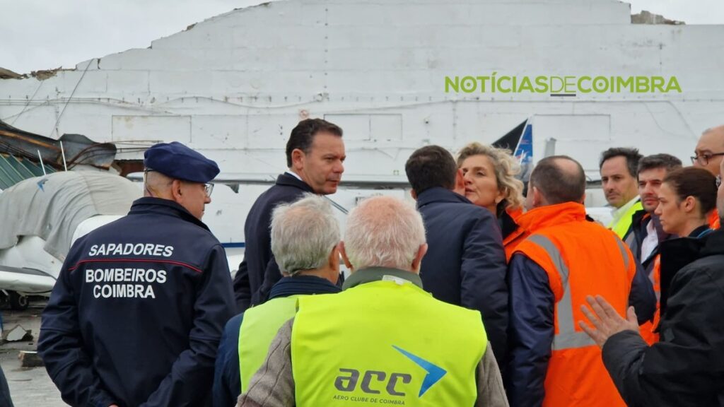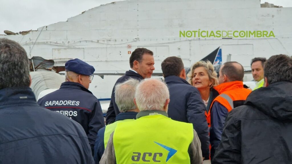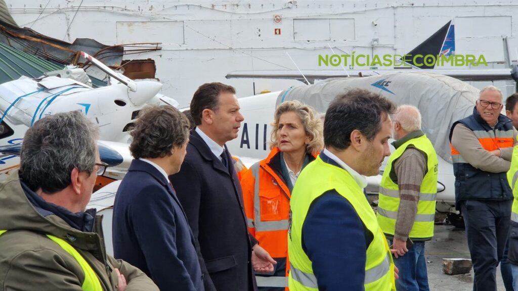O primeiro-ministro Luís Montenegro está esta quinta-feira, 29 de janeiro, no Aeródromo de Coimbra para observar os estragos provocados pela tempestade Kristin.