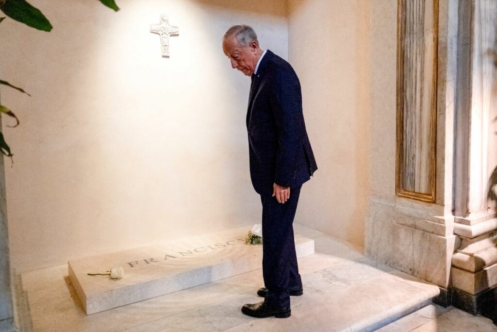 Durante a visita a um dos mais importantes templos marianos da capital italiana, o chefe de Estado português prestou uma homenagem ao Papa Francisco, com um ramo composto por sete rosas brancas junto ao túmulo. Marcelo Rebelo de Sousa participou ainda na missa que estava a decorrer.