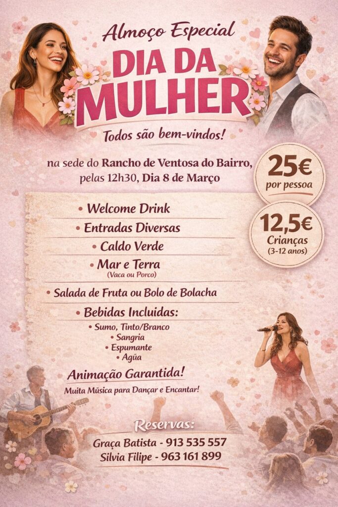 O convívio de celebração da efeméride é promovido pelo Rancho Folclórico de Ventosa do Bairro e tem um custo unitário de 25 euros por pessoa.