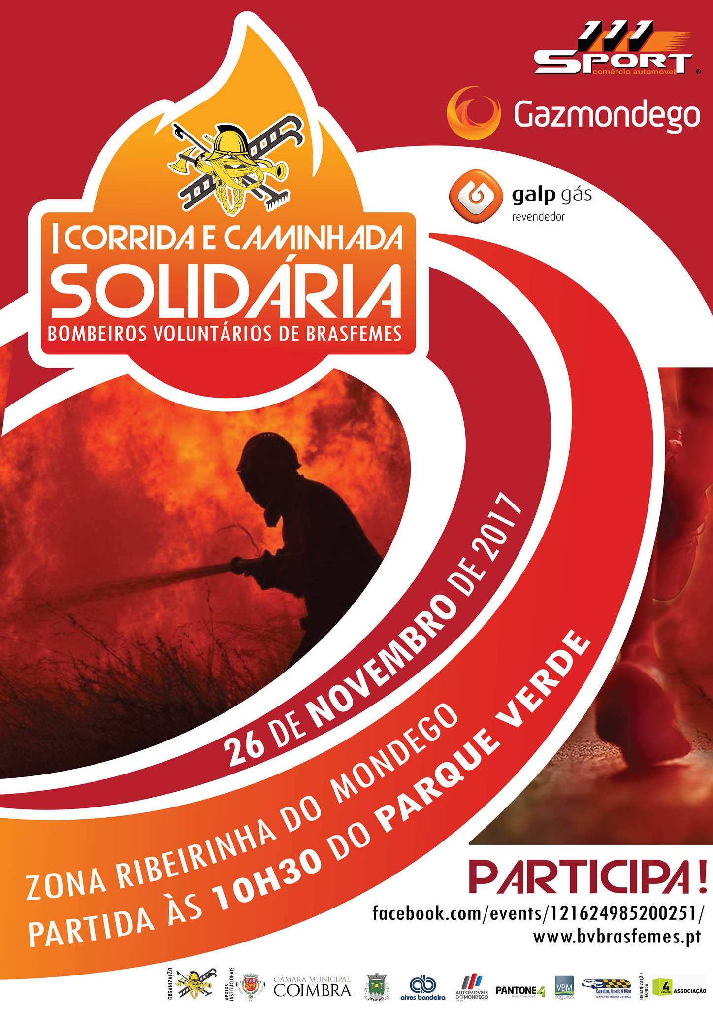 Com o patrocínio da Câmara Municipal de Coimbra e Junta de Freguesia de Brasfemes, a primeira edição da Corrida e Caminhada Solidária a favor dos Bombeiros Voluntários de Brasfemes conta com o apoio das empresas Gasmondego e 111 Sport e Galp.