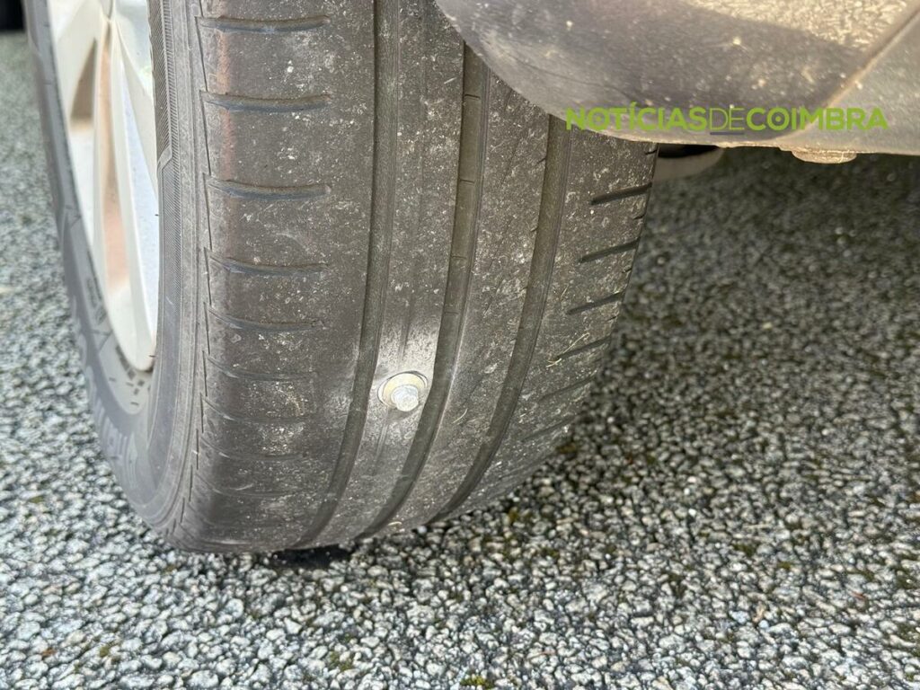 No local, o Notícias de Coimbra testemunhou um veículo parado na berma com dois pneus traseiros completamente danificados, ambos com parafusos cravados na borracha.