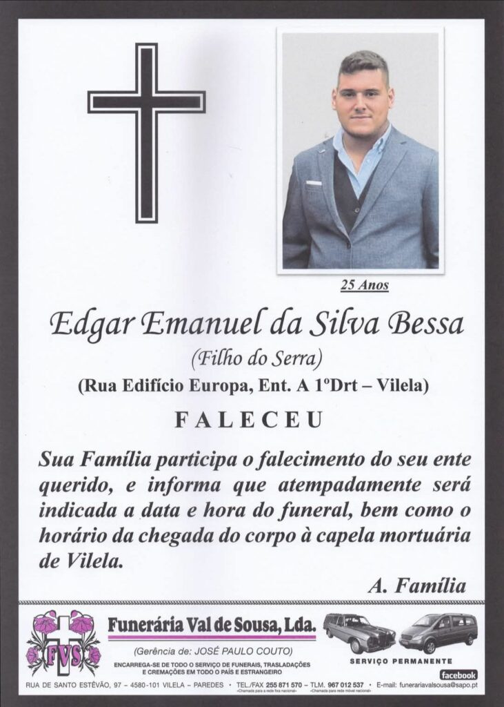 A vítima mortal do acidente de trabalho na empresa Bongado, dedicada à comercialização de produtos agrícolas e alimentares, situada em Duas Igrejas, freguesia de Sobrosa, concelho de Paredes, é Edgar Bessa, residente em Vilela.