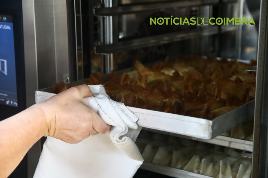 A confeção do Pastel de Tentúgal mantém-se fiel à receita original: apenas água e farinha para a massa, trabalhada até atingir uma espessura extremamente fina, cerca de 0,05 milímetros. A preparação exige grande destreza manual e muita prática. “A massa tem de ficar fininha; se rasgar ou ficar grossa, já não serve”, explica Margarida.