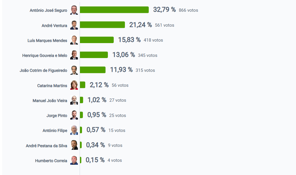 Em segundo lugar ficou André Ventura, que recolheu 21,24% votos.