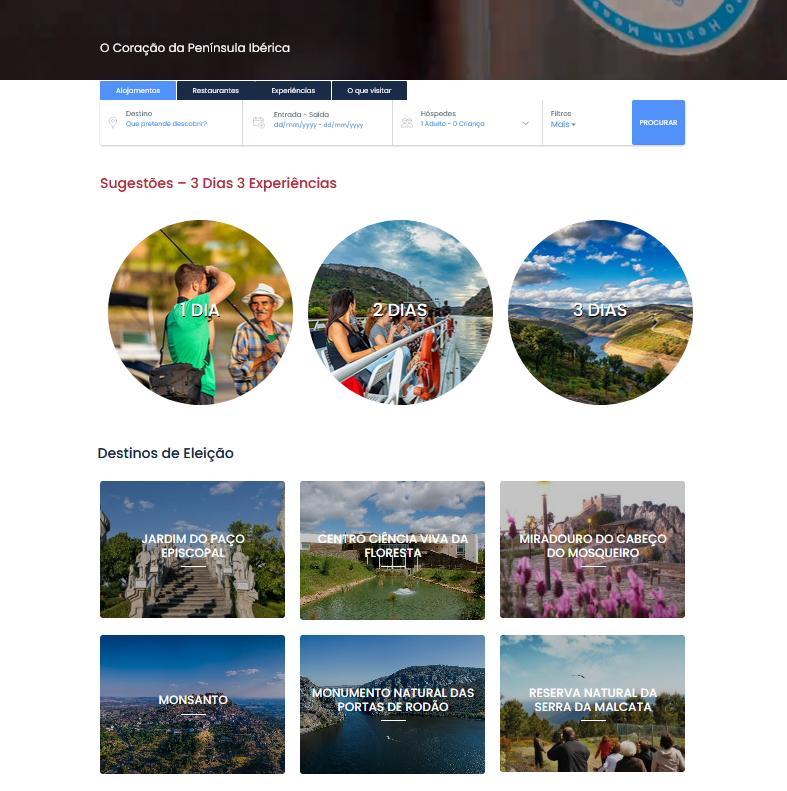 Fornece ainda informação sobre os operadores turísticos e estabelecimentos de restauração da região, permitindo a pré-reserva.