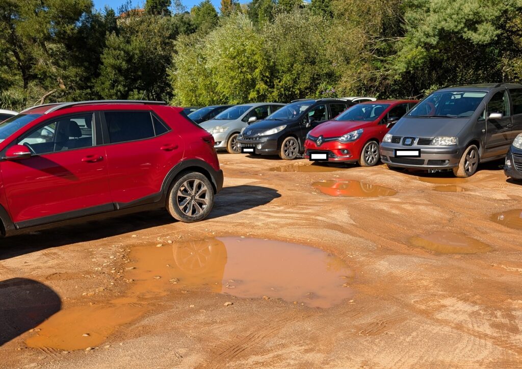 O terreno usado como parque de estacionamento apresenta buracos de grandes dimensões que tornam o estacionamento arriscado e até impossibilitam o acesso de veículos mais baixos.