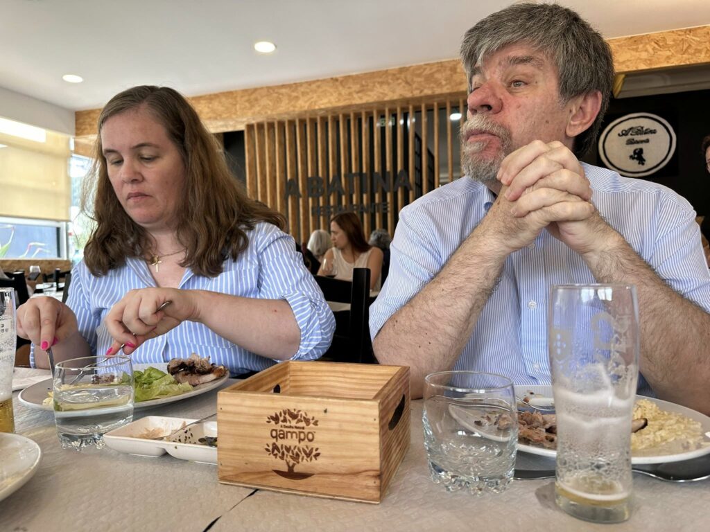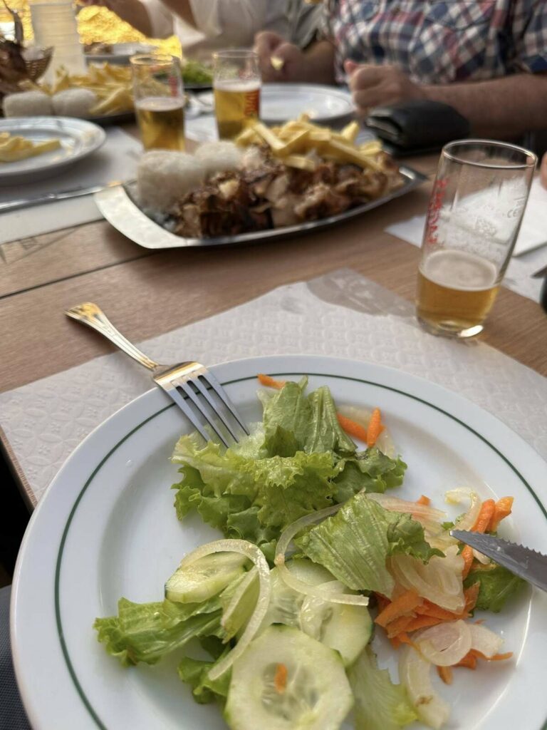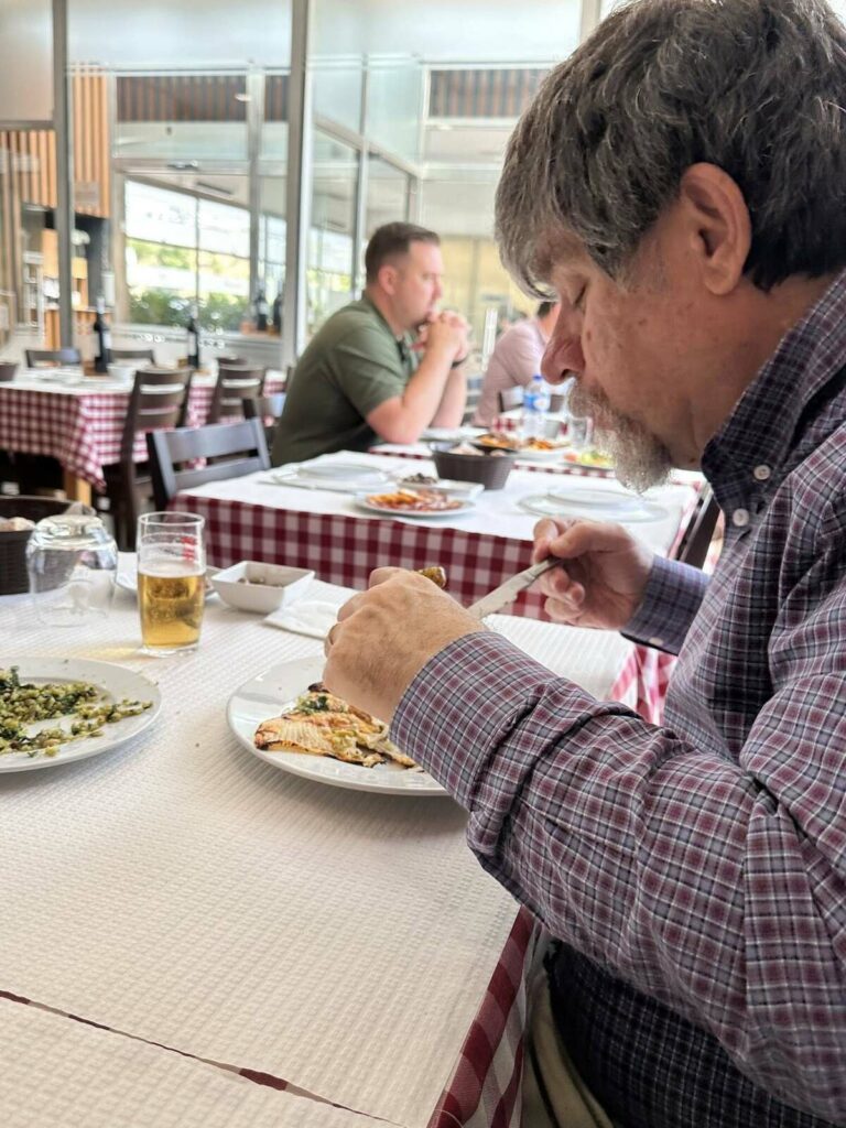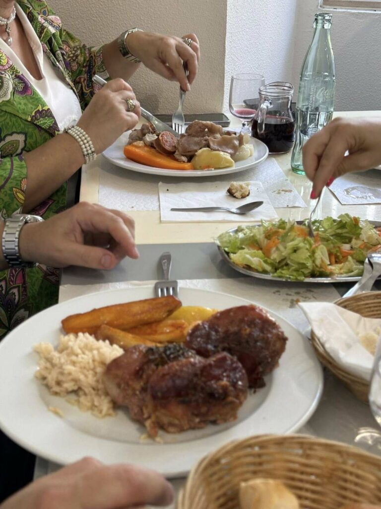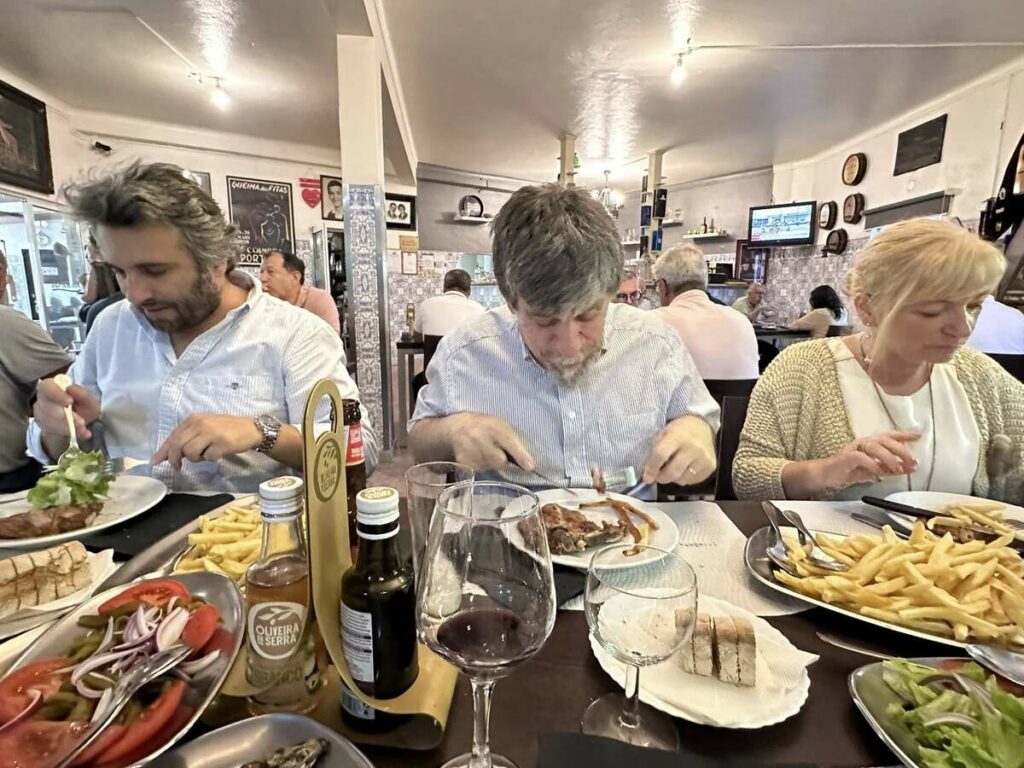 Começamos esta ronda pelo “Rodrigues do Bacalhau” em Cioga do Monte. Com a “equipa completa”, teve oportunidade de provar o “prato único de bacalhau lascado com batata a murro” que teve de ser marcado antes da refeição. “Delicioso, mas desta vez não comi sem sal, só na salada de tomate”, referiu.