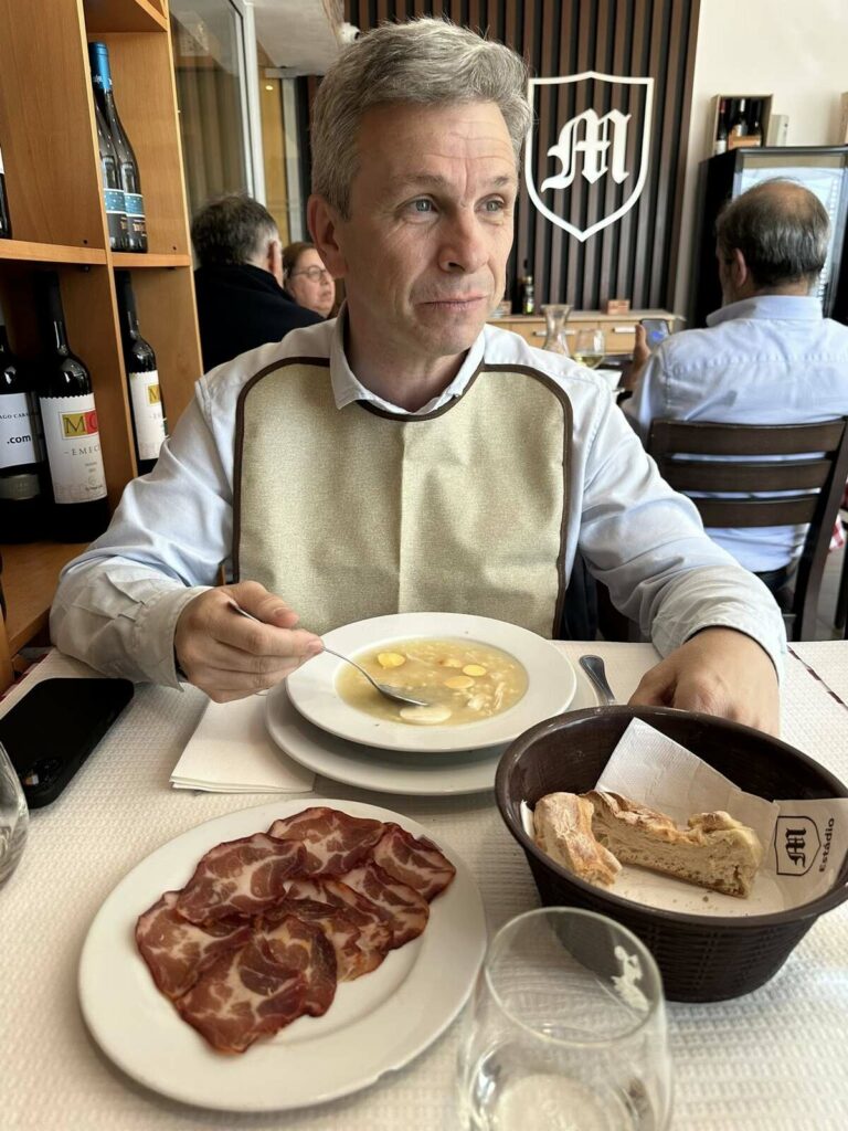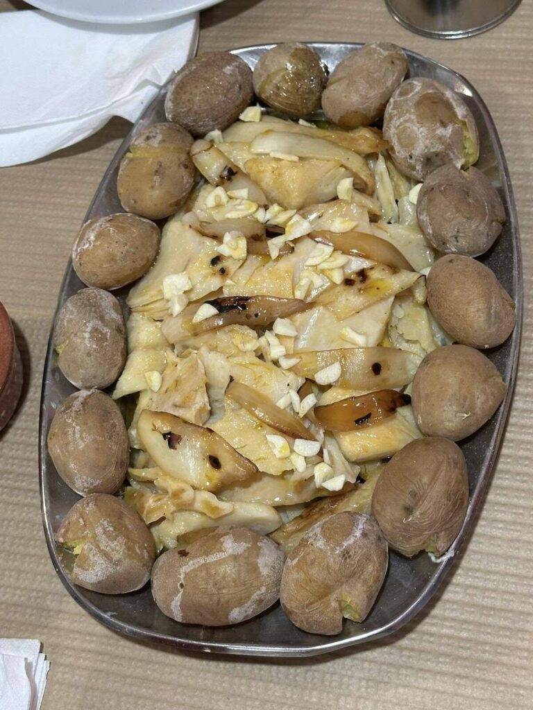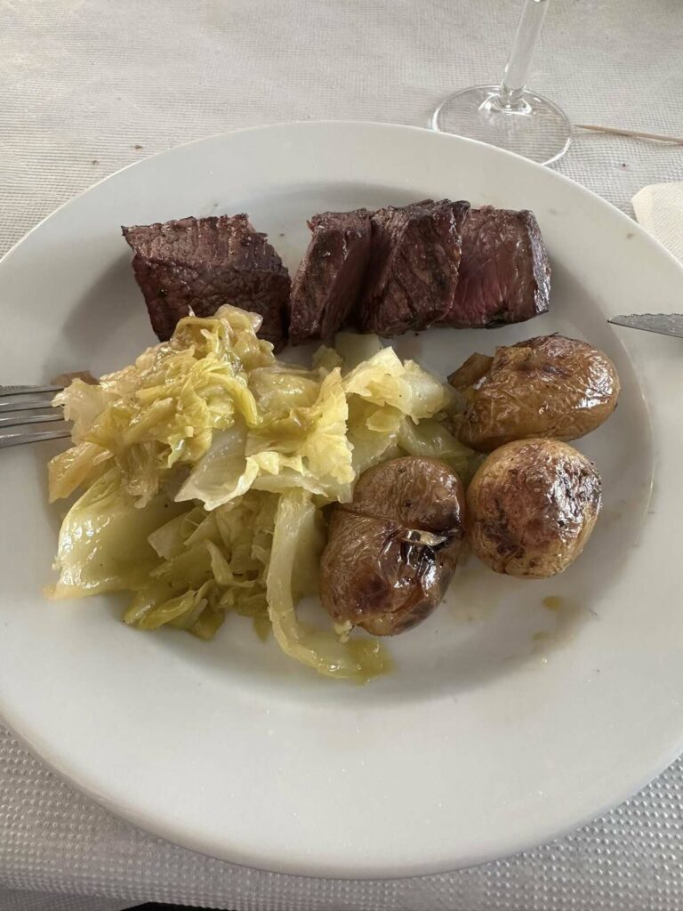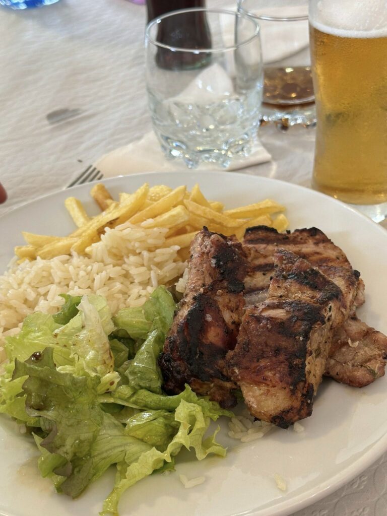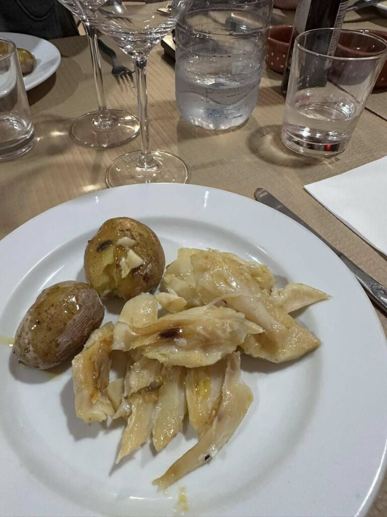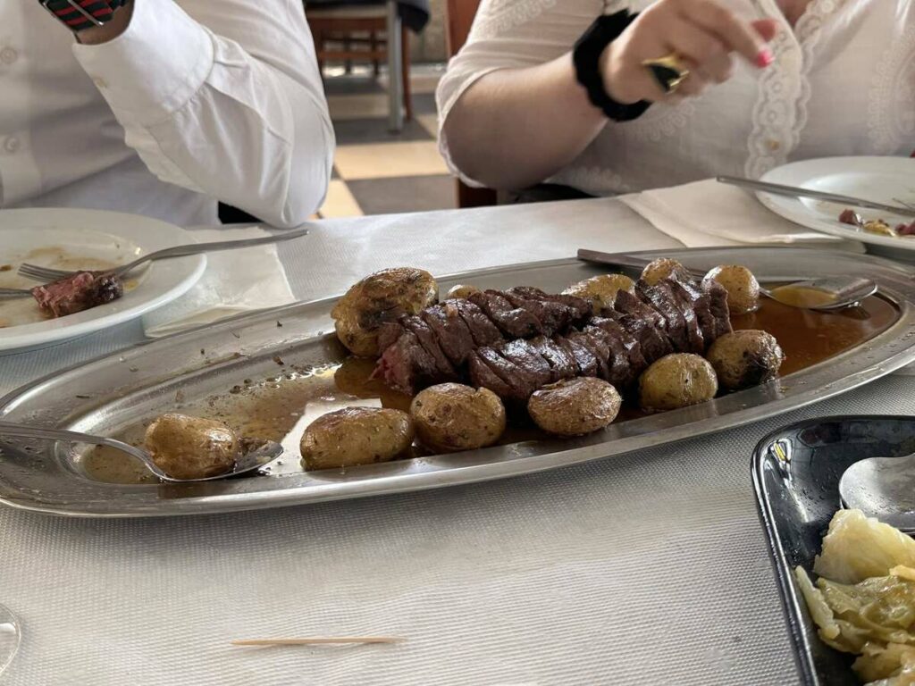 Começamos esta ronda pelo “Rodrigues do Bacalhau” em Cioga do Monte. Com a “equipa completa”, teve oportunidade de provar o “prato único de bacalhau lascado com batata a murro” que teve de ser marcado antes da refeição. “Delicioso, mas desta vez não comi sem sal, só na salada de tomate”, referiu.