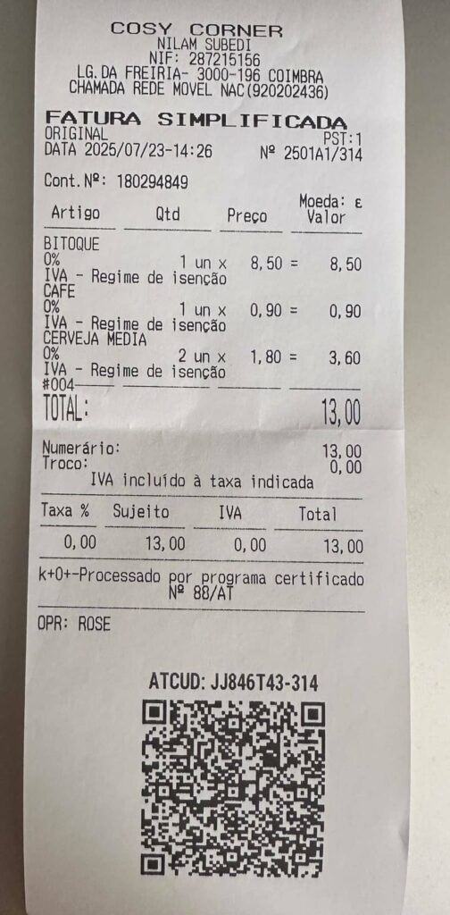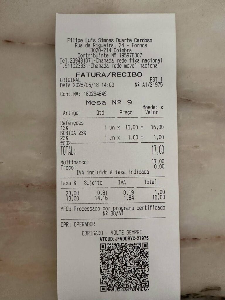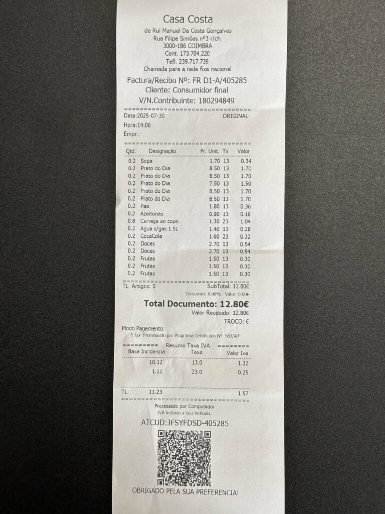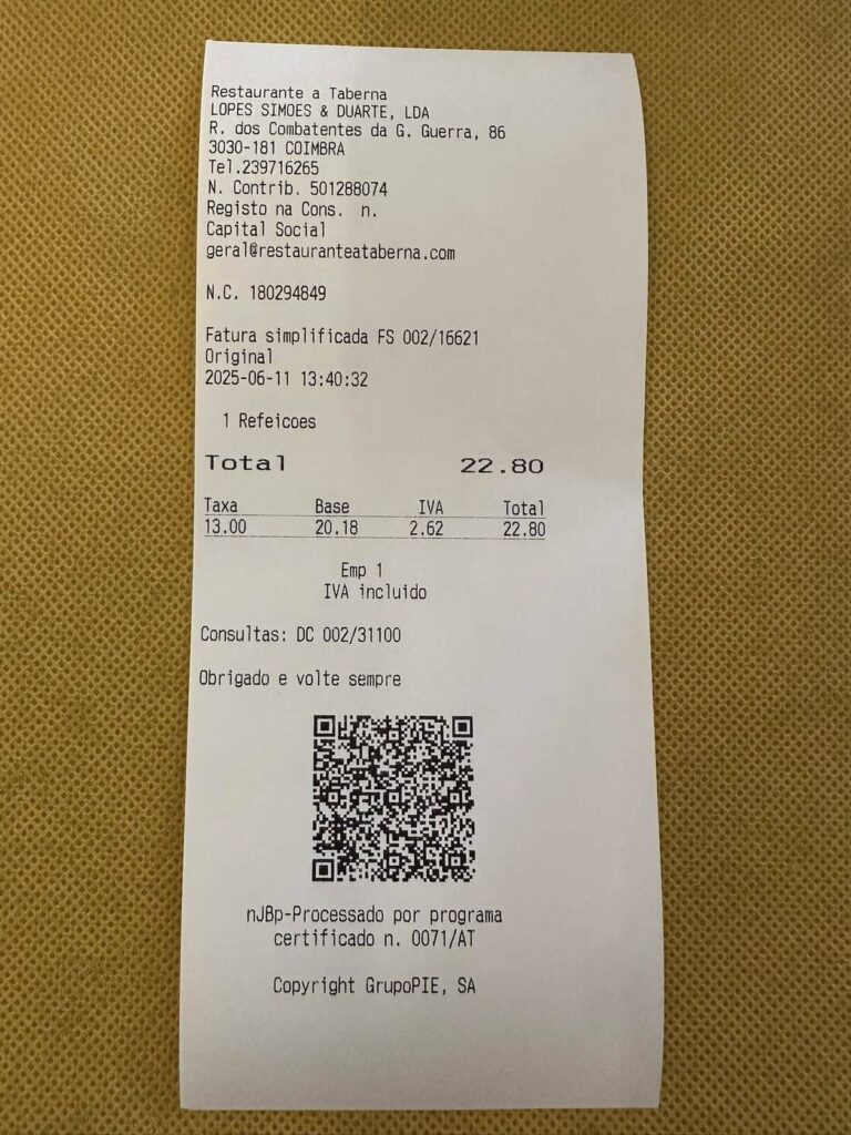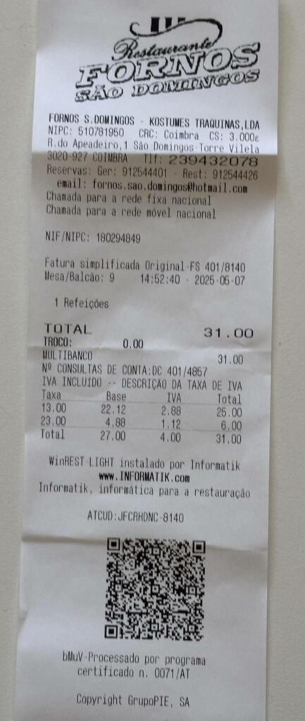 A paragem foi no restaurante “Arte Nova” em Eiras. Aqui, provaram uma “sopa saborosa e um naco delicioso, com pouco sal!”. “Três nacos chegaram e sobraram para 4 vereadores famintos”, disse, ao mesmo tempo que agradeceu “o serviço diligente e simpático”.