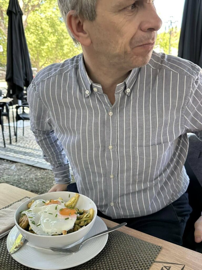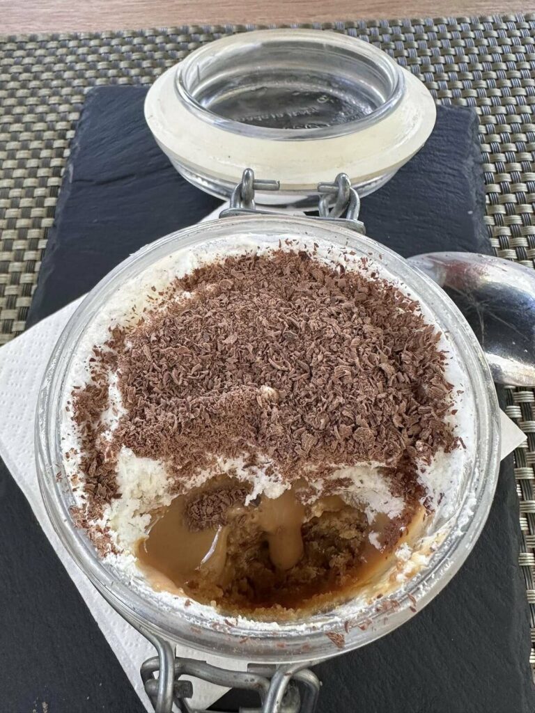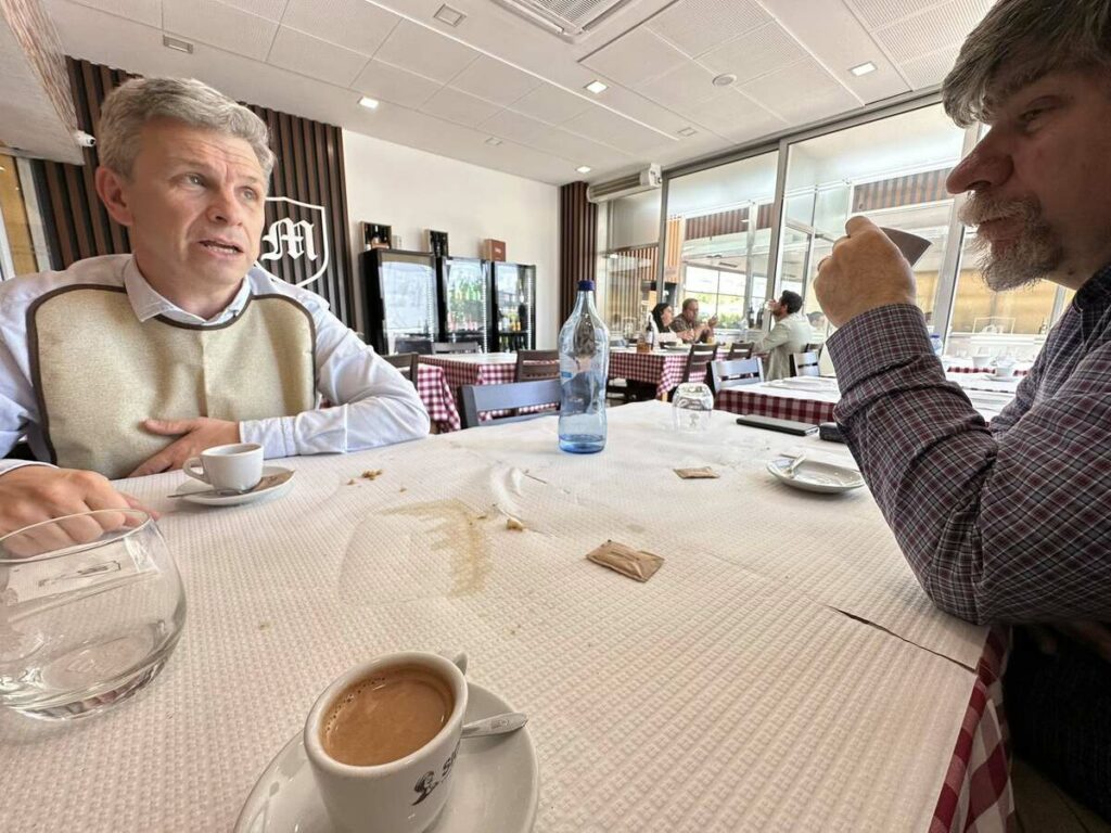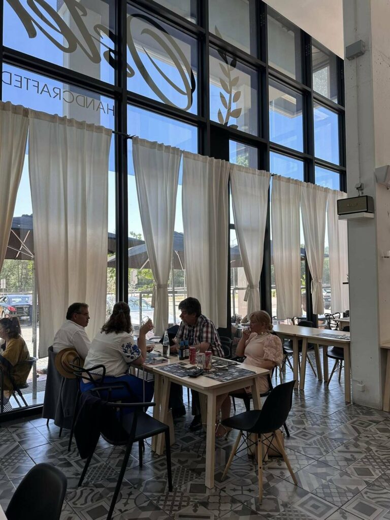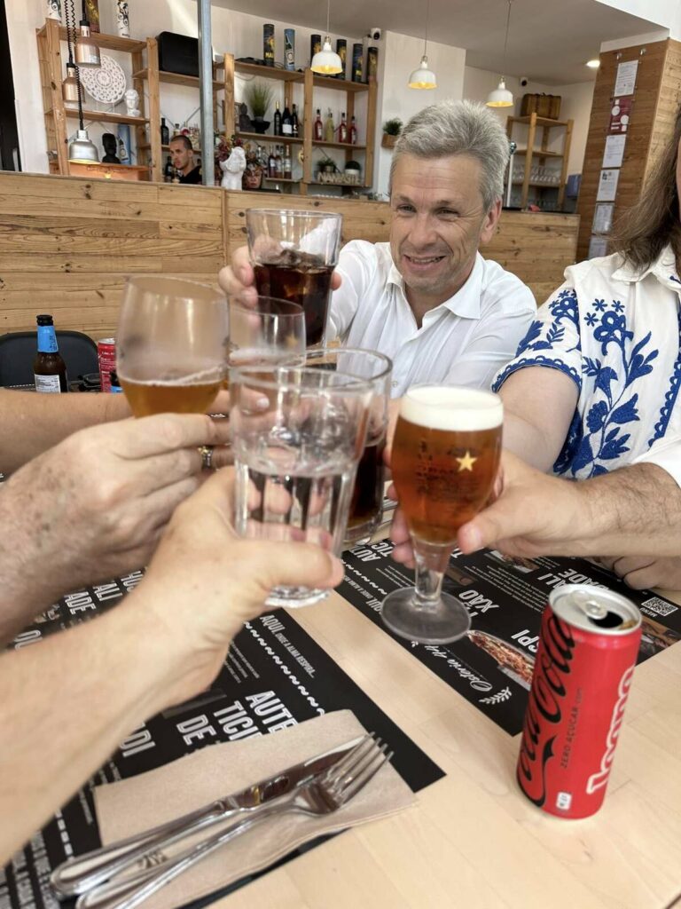 A paragem foi no restaurante “Arte Nova” em Eiras. Aqui, provaram uma “sopa saborosa e um naco delicioso, com pouco sal!”. “Três nacos chegaram e sobraram para 4 vereadores famintos”, disse, ao mesmo tempo que agradeceu “o serviço diligente e simpático”.