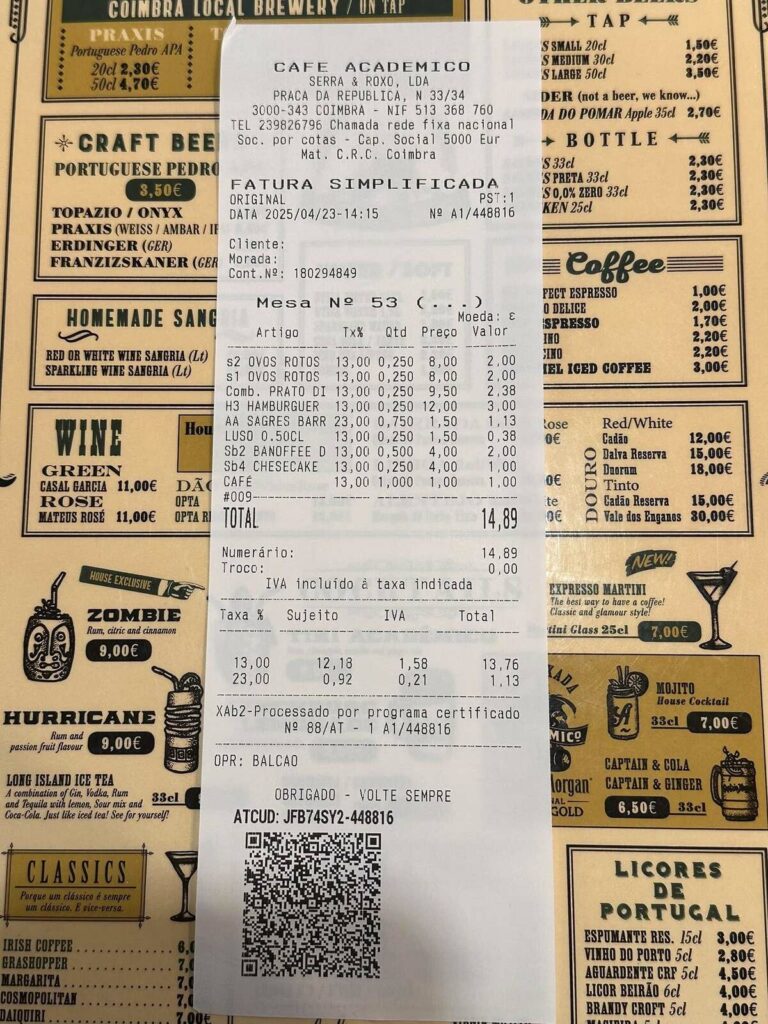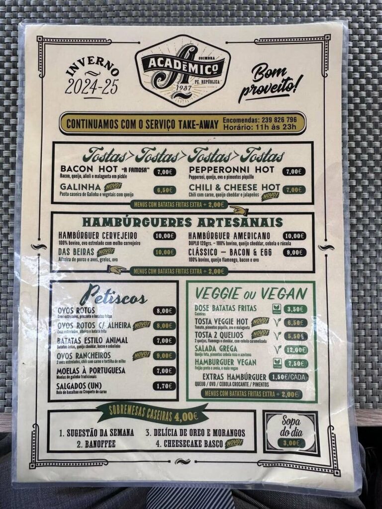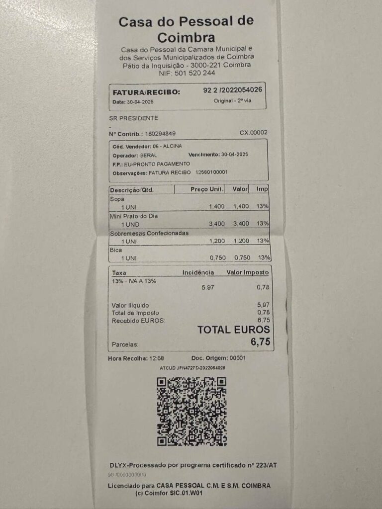O mês de abril, em termos de críticas gastronómicas. terminou no bar da Casa do Pessoal da Câmara Municipal de Coimbra.