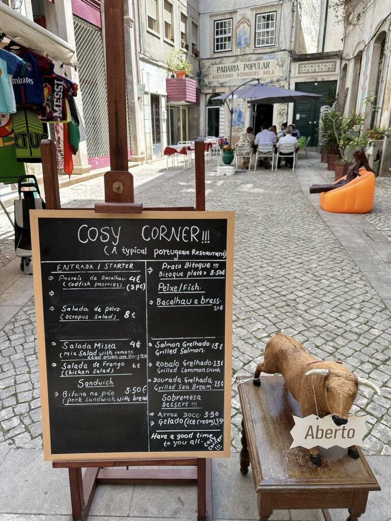O “Cosy Corner” no Largo da Freiria, em plena Baixa da cidade, foi o local escolhido para a refeição de 23 de julho.