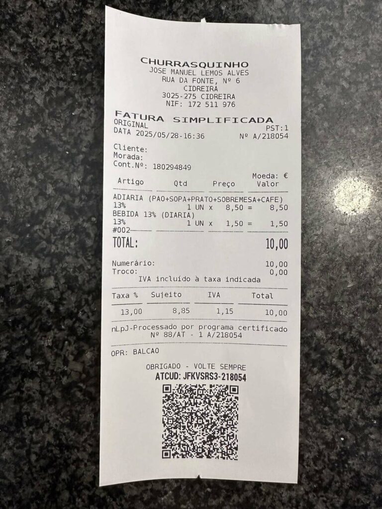 Aqui, na rua de Montarroio, encontrou “boa comida e bom convívio”, mas aproveitou para deixar o reparo que comeu o prato principal tinha sal. À saída, “deixei a nota, pela saúde dos nossos trabalhadores, para, pelo menos a sopa, passar a ser sem sal”.