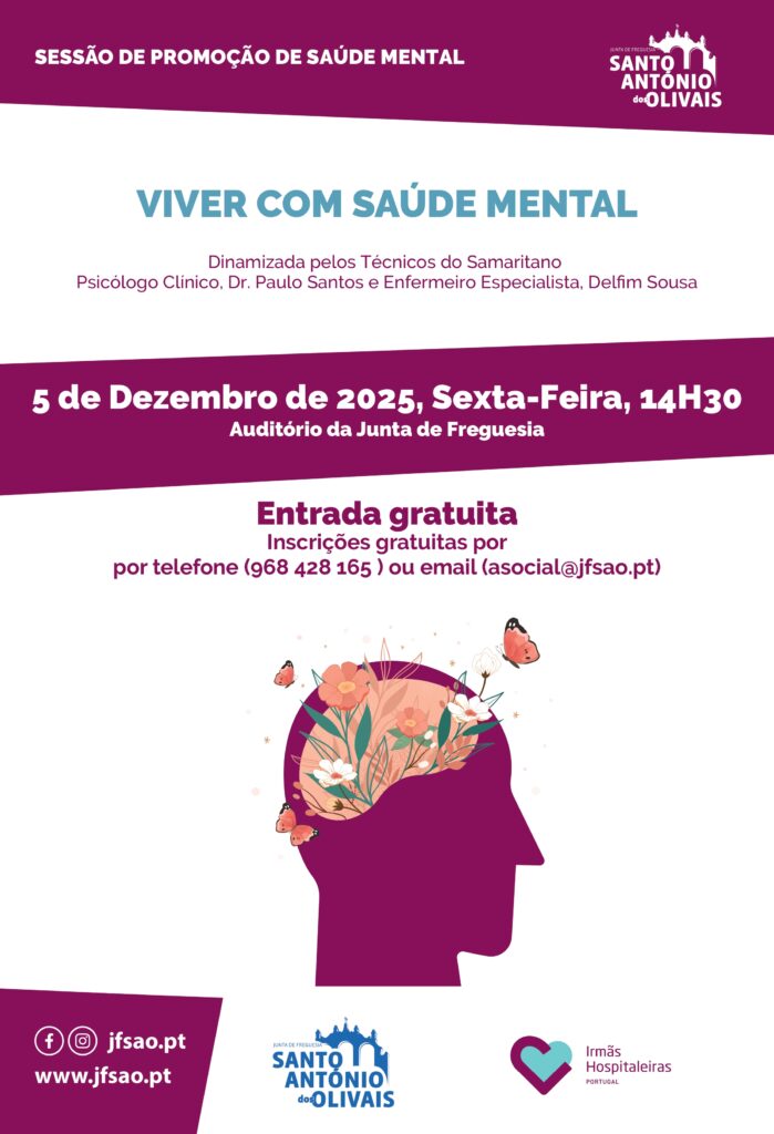 A iniciativa tem lugar sexta-feira, 5 de dezembro, a partir das 14:30 no auditório da junta. As inscrições são gratuitas e podem ser feitas de duas formas: pelo telefone 968 428 165 ou mail asocial@jfsao.pt.