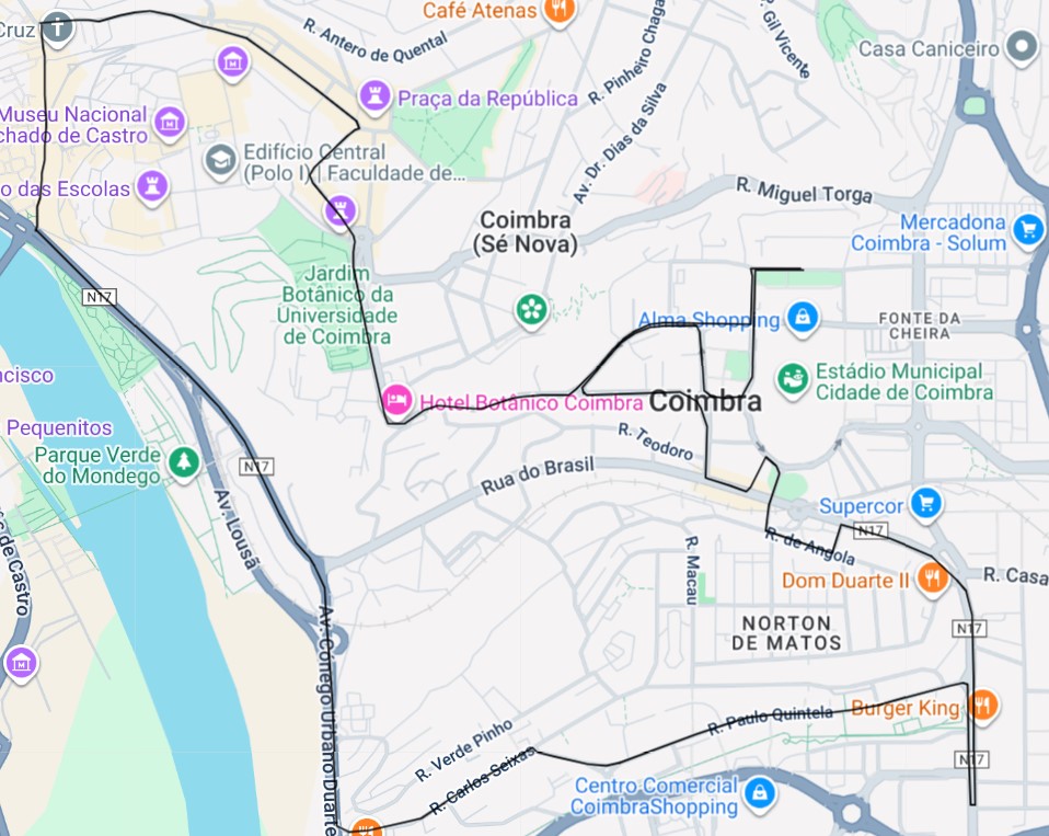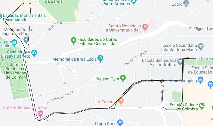 Com a partida aprazada para as 18:31, na Rua Infanta Dona Maria, os participantes rumam à Rua D. Manuel I, Rua do Estádio, Praça S. José, Rua da Brotero, Rua General Humberto Delgado, Rua dos Combatentes da Grande Guerra, Alameda Dr. Júlio Henriques, Rua Alexandre Herculano, Praça da República, Rua Oliveira de Matos, Rua Castro Matoso, Alameda Dr. Júlio Henriques, Rua dos Combatentes da Grande Guerra, Rua General Humberto Delgado, Rua D. Manuel I e Rua Infanta Dona Maria, local da chegada.